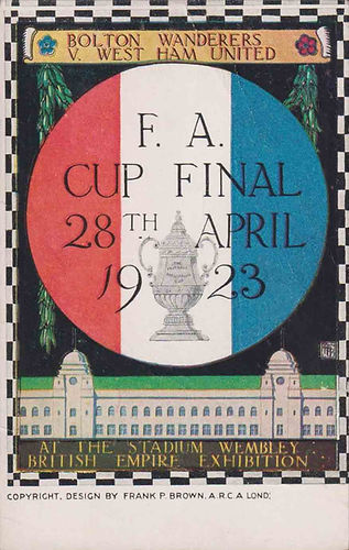 Frank P. Brown A.R.C.A. (Associate of the Royal College of Art) is credited with designing this 1923 FA Cup Final postcard