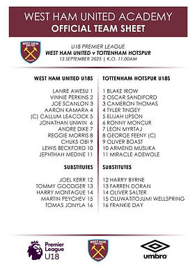 West Ham’s domination continued early in the second half as Callum Leacock and Dike sent shots wide, and the Irons’ failure to make the game safe almost came back to haunt them when substitute Anand Batra pulled a goal back on 68 minutes with Fulham’s first shot on target. Coggin’s team saw the game out comfortably, though, restricting Fulham to only one further goal attempt when Alfie White’s shot was blocked. Substitute Jephthan Medine missed a chance to add a third in added-time but West Ham had done enough and a first success of the campaign saw the U18s rise four places to tenth in the 15-team table.